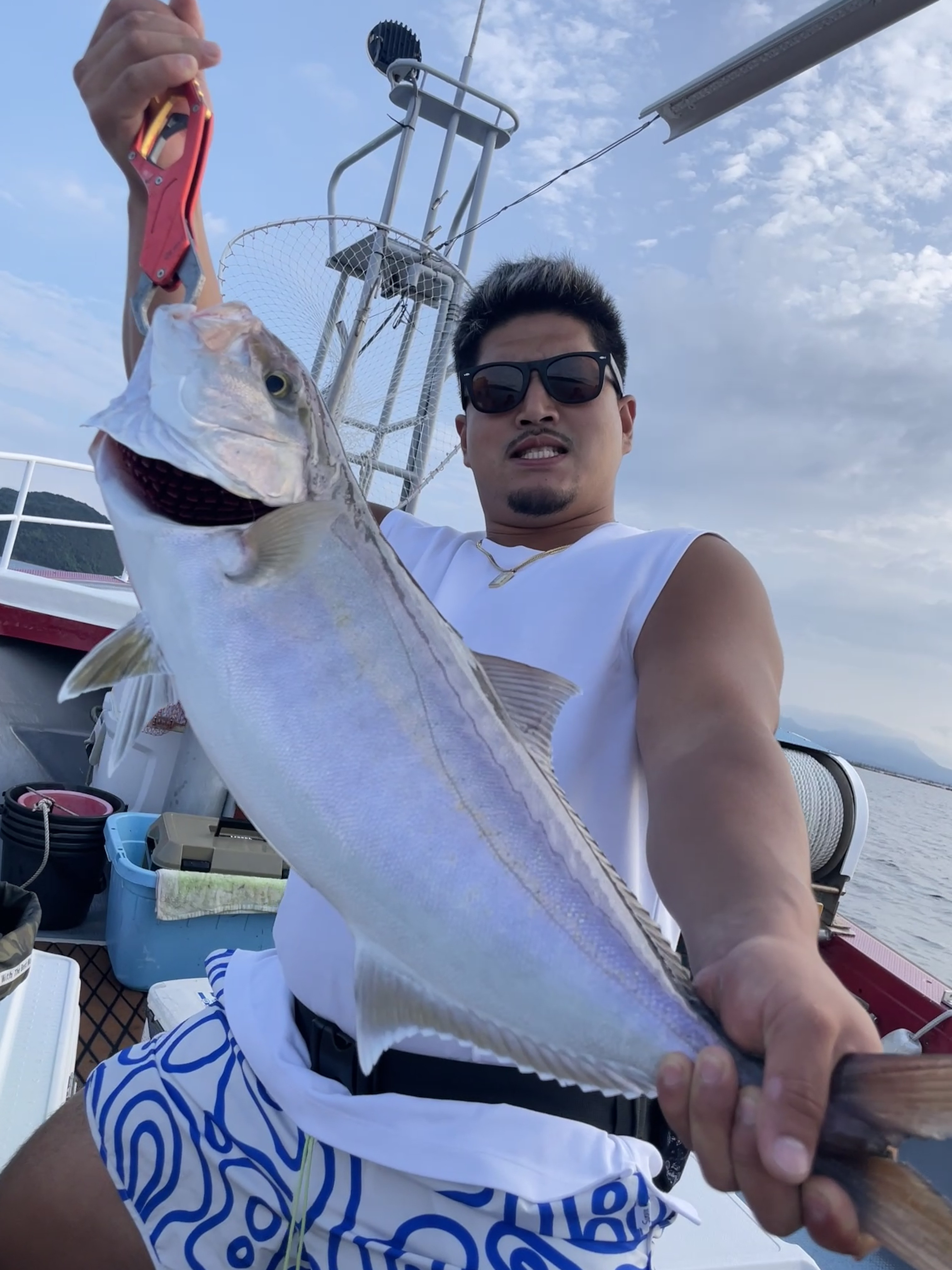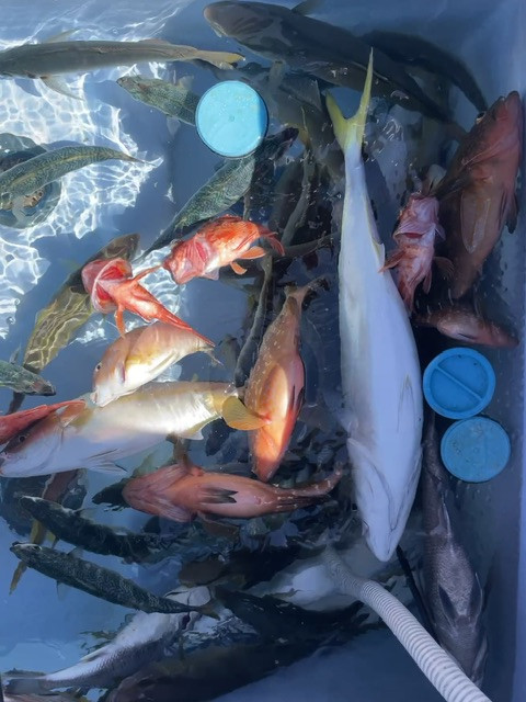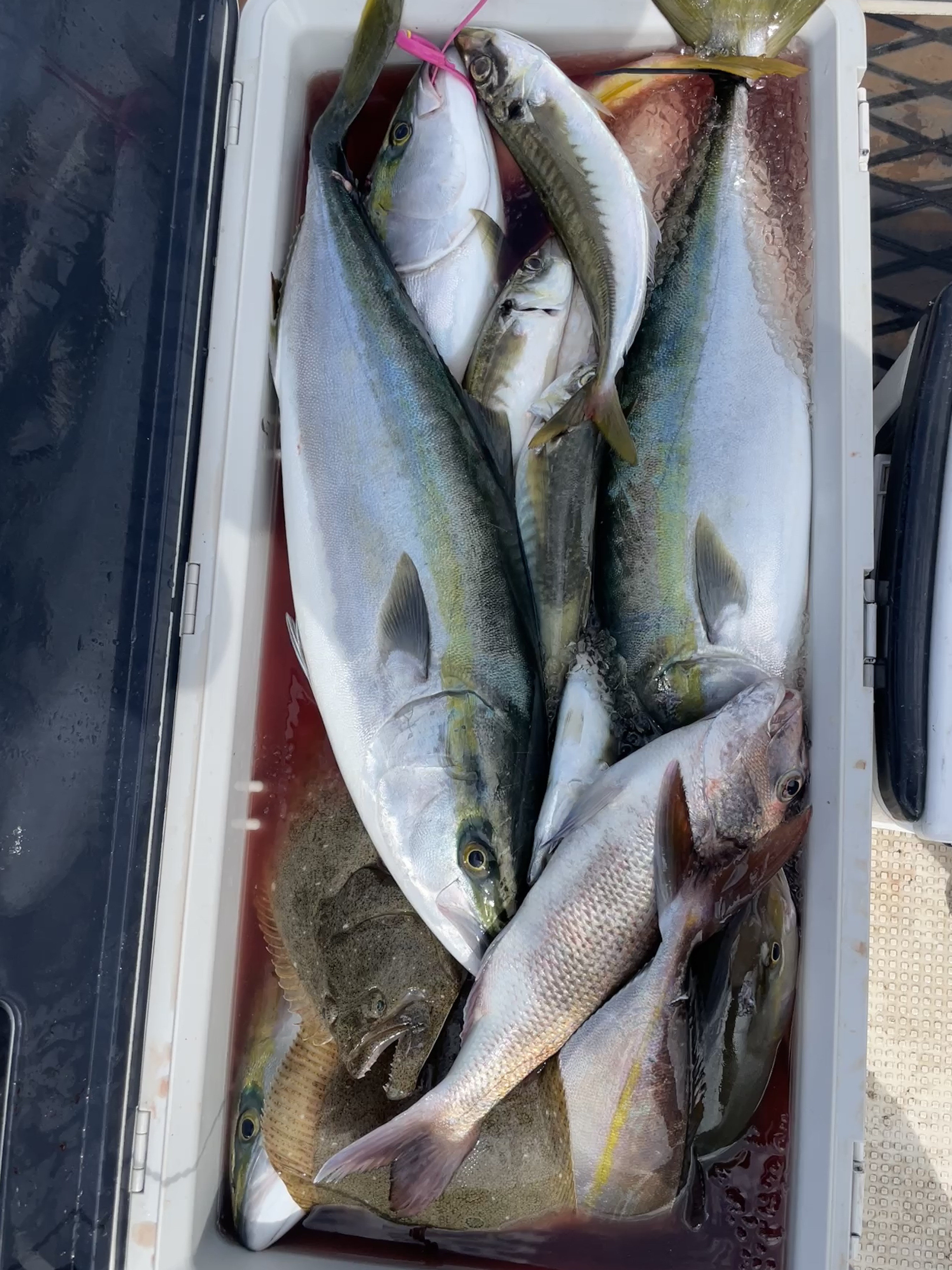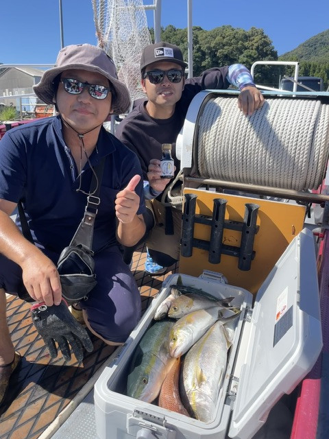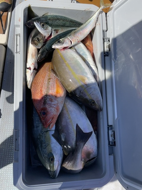 楽しい仲間たちでの釣行でした、カンパチ・ネリゴ・ブリ・鯛・最後はニベまで釣れて本当に楽しゅうございました。