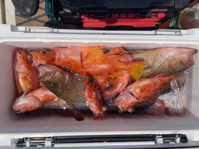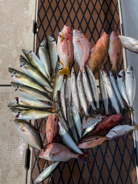 広げた釣果に小物だけで青物は既にクーラーインしてしまってます😀